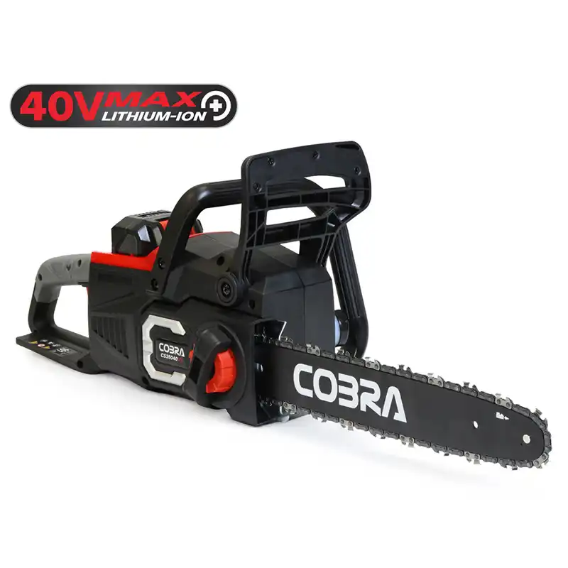 The Cobra CS35040VX is a powerful, cordless chainsaw designed to make cutting and pruning tasks easier, cleaner, and more convenient. Powered by a high-performance 40v MAX PLUS 4Ah lithium-ion battery, it delivers a long run time and quick recharge with the included standard Max+ charger - perfect for tackling jobs without the noise or maintenance of a petrol saw.