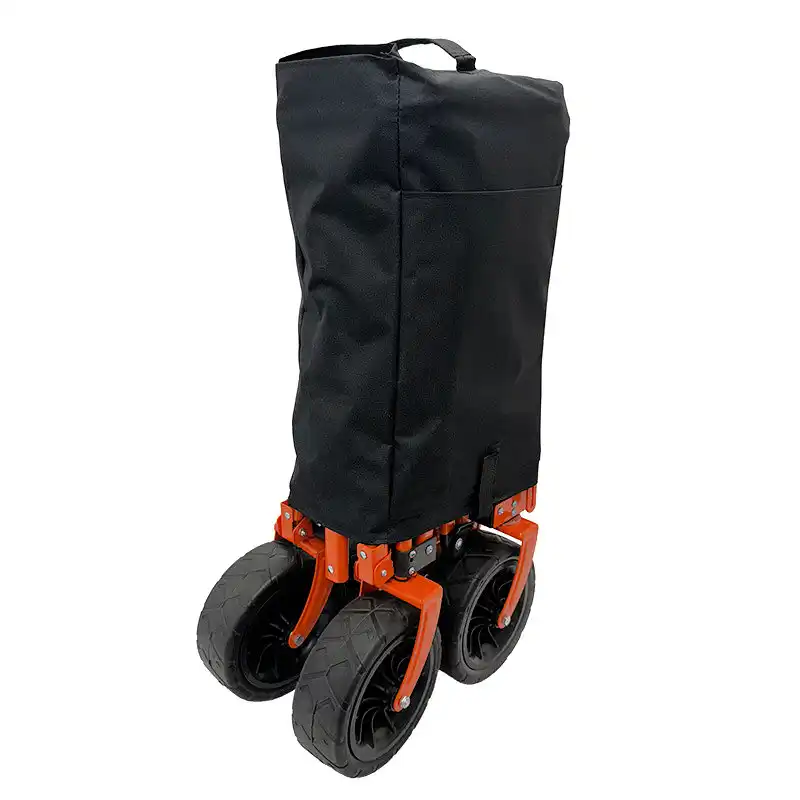 Moreover, the cart includes a handy storage bag that quickly pulls over the cart to keep everything together. The thoughtful design features a hole at the top, allowing you to access the extending handle even when the cart is folded with the cover on. This means you can tow it along effortlessly, ensuring that youre always ready for the next adventure.
