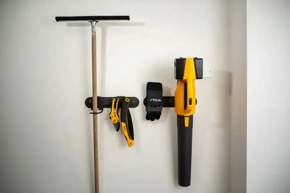 The STIGA Universal Wall Storage System is your ideal solution for efficient garden tool organization.