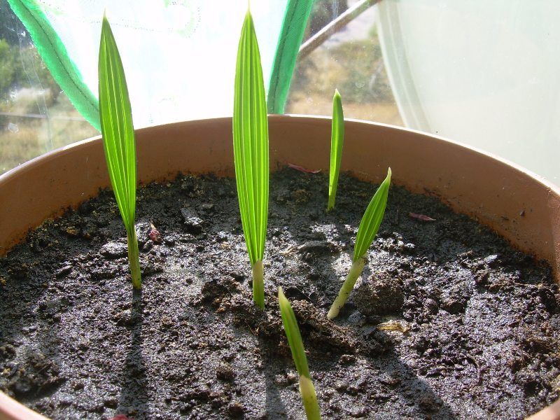 Косточка финика сажается во влажный грунт вертикально, и первые всходы появляются уже через неделю, а в целом семена могут прорастать в течение трех недель.