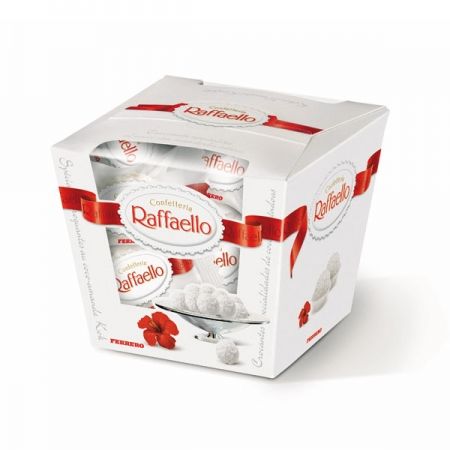 Конфеты Raffaello 390 руб. В корзину Купить в 1 клик Описание Описание Сладкий подарок к выбранному букету!Конфеты Raffaello с миндальным орехом в кокосовой обсыпке, 150 г.