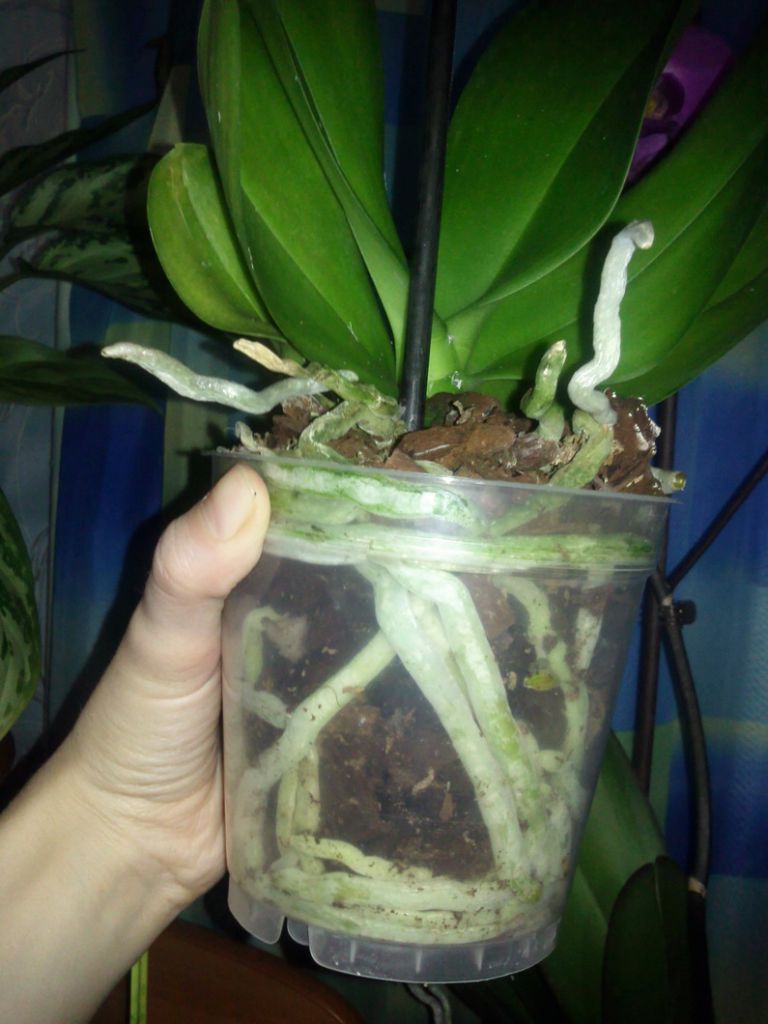 Корни, это один из важнейших вегетативных органов растения. Они насыщают цветок полезными веществами, влагой, активно участвуют в процессе фотосинтеза. Орхидея имеет два вида корней: внутренние и воздушные (надземные).
