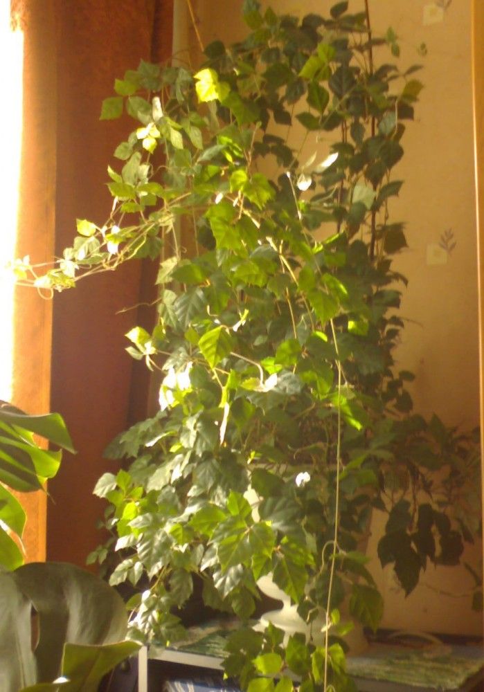 - Циссус ромболистный — тенелюбивое растение, длиной до 1,5 метров. Выращивают на опоре.
