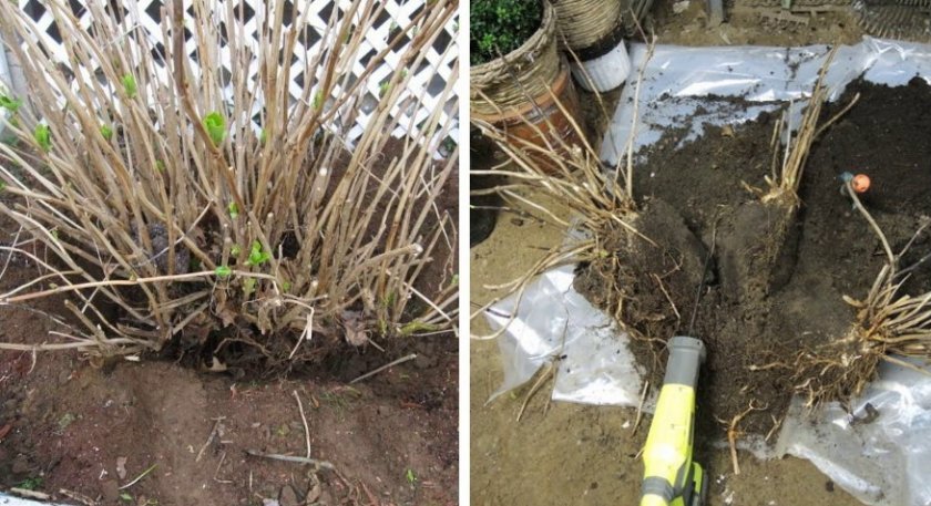 Деление гортензии корневой системой производится ранней весной. Нужно выбрать побег, отделить лопатой часть корневой системы. Затем перенести в другое место для посадки.