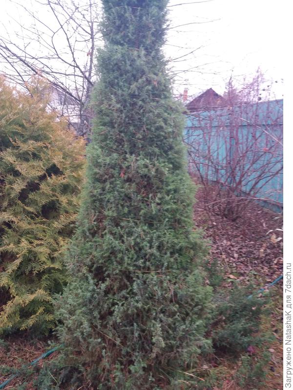 Кипарисовик – продали мне его как тую, с тех пор на выставках ничего не покупаю. Верхушки уже нет – сгорела, когда я ее не накрыла перед зимой.