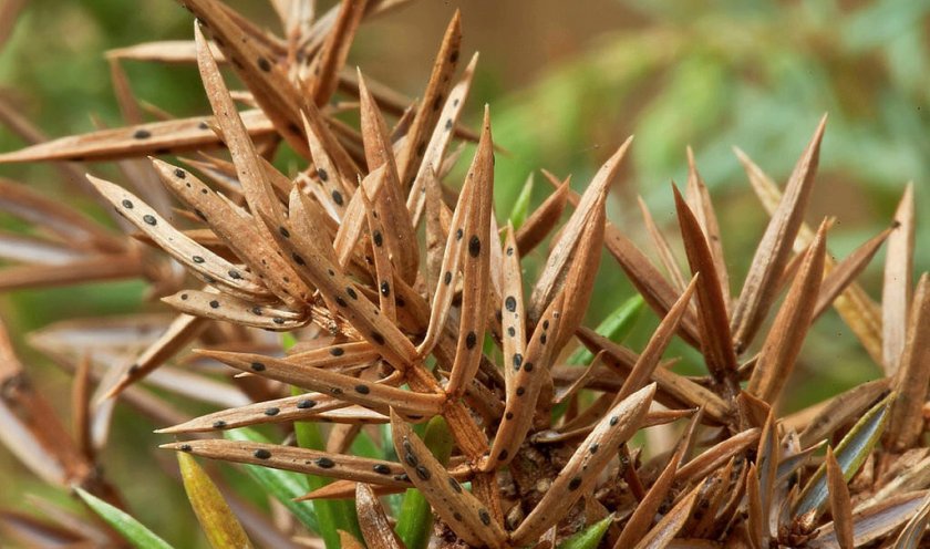 Данная культура слабо переносит поражение заболеваниями. Даже экземпляры, которые удалось прорастить из семян, не всегда способны избежать этой участи. Самыми распространенными недугами можжевельника являются ржавчина, увядание ветвей, солнечные ожоги. Часто растение становится жертвой различных грибков.