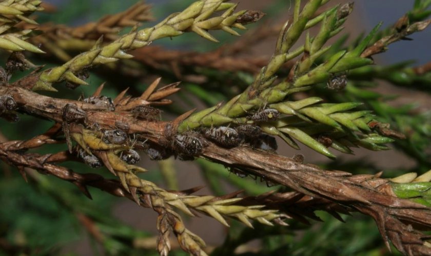 На можжевельнике могут поселиться такие вредные насекомые, как: