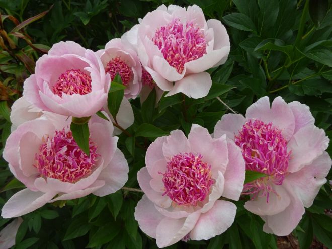 - Пионы. Эти цветы для сада станут ярким украшением. Вырастают в высоту до 100 см. Окраска цветов лежит в диапазоне от белого до темно-красного. Среди самых популярных сортов выделяют следующие: Ширли Темпл, Чарльз Уайт, Сара Бернар и Сорбет.