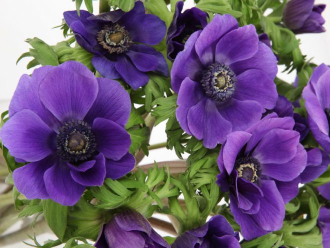 - Анемоны (ветреница). Имеется около 160 видов этих растений, все они цветут в разное время. Диаметр цветка составляет 7-8 см. Встречаются такие оттенки: фиолетовый, голубой, ярко-красный.