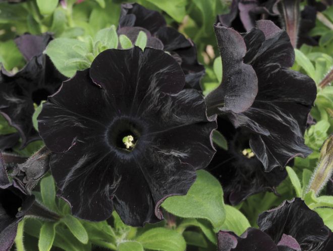 - Петуния. Садовые цветы, длина стеблей у которых может достигать 70 см. Воронкообразные цветки распускаются с июня по октябрь. Высота побегов до 80 см. Окрас бутонов может быть разным от белого до светло-розового, темно-пурпурного и даже синя-черного.