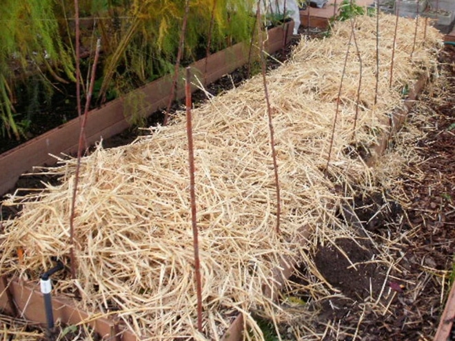 После того как установятся минусовые температуры и почва подмерзнет, посаженный осенью под зиму лук мульчируют. Грядки можно прикрыть соломой, сухой травой, измельченными остатками здоровых растений, лапником.