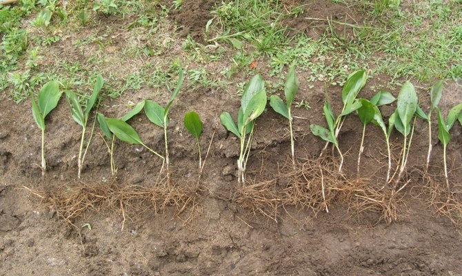 Теперь о том, как сажать ландыши правильно. Предварительная процедура – рыхление почвы и подготовка канавок до 15 см в глубину. Небольшую часть корневища высаживают так, чтобы отросток можно было засыпать землей на 1-2 см, не более.