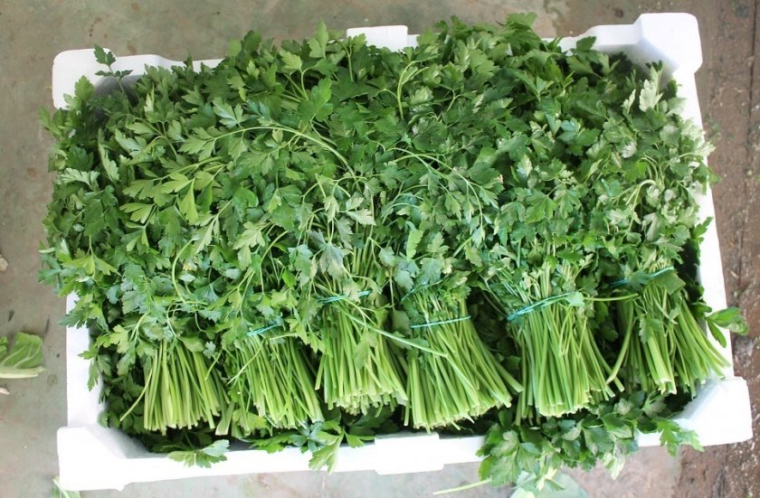 Выращивают петрушку под зиму для употребления в свежем виде. Поэтому как только листья и стебли достигнут зрелости, их срезают. Для употребления в течение длительного времени сразу же надо положить траву в холодильник, в пакеты, обеспечив зелени доступ воздуха. Не забывают перед закладкой перебрать побеги, подсушить их.