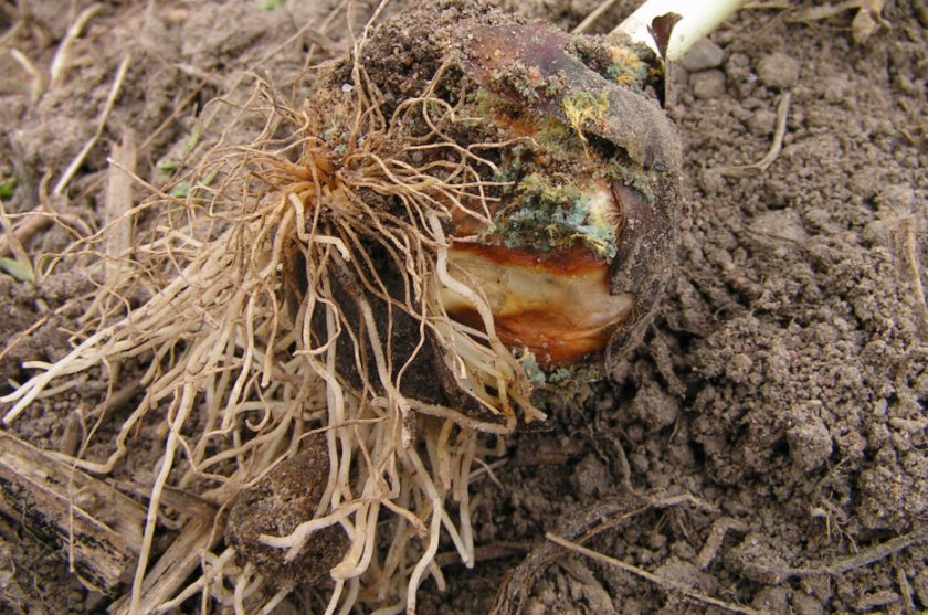 Весь некачественный посадочный материал сразу же убирается, а заражённые луковицы необходимо немедленно сжечь.