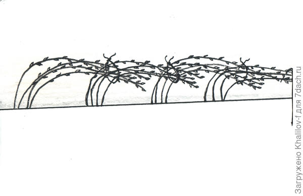 поверхности почвы (около 30 см). Еще ниже пригнуть кусты очень сложно, да и не