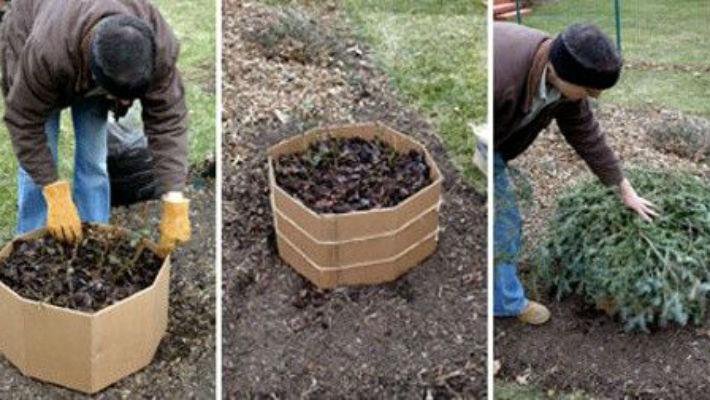 После этого я накрываю рыхлую землю картоном – желательно не очень толстым, так как в нашем влажном климате тонкая бумага не только сохраняет тепло, но и отлично перегнивает за зиму, так что даже снимать это укрытие весной необязательно. Но если вы используете толстый картон, его нужно будет в конце марта обязательно снять.