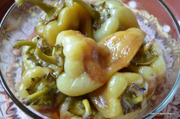 Итак, наш жареный болгарский перец на зиму с чесночком готов. Храним до холодов и праздников. Подаем стручки как закуску. Брать их нужно за хвостик. Остается пожелать вам, дорогие друзья, удачных заготовок!