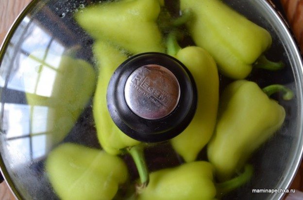 Перевернув перцы, сначала накройте их крышкой, а потом ставьте на огонь.
