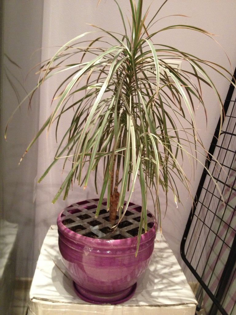 Драцена любит рассеянное солнышко. Поливать по мере подсыхания почвы.