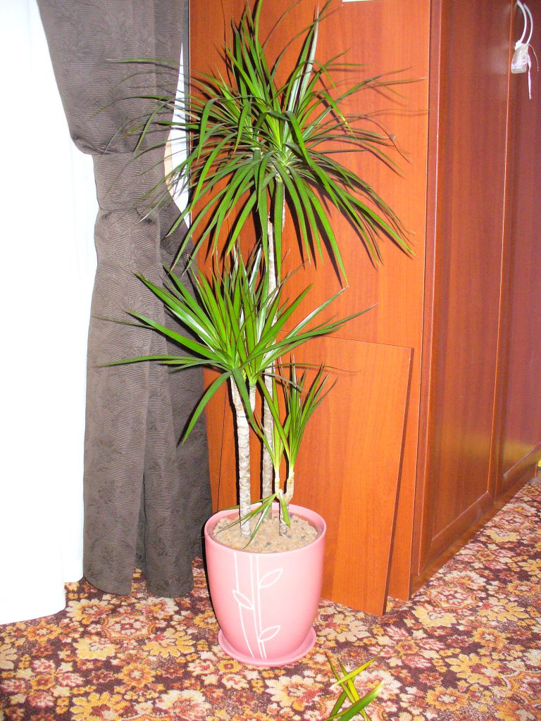 Драцена деремская (Dracaena deremensis). Ещё один достаточно крупный (высота около 3 м) вид драцен. Имеет толстый древовидный ствол, покрытый листьями, которые, опадая, оставляют на стволе рубцы. Листья тёмно-зелёные, длинные (до 50см) и широкие (до 5 см). Различные формы этого вида могут иметь продольные белые и жёлтые полосы на листьях. В природе цветёт ярко-красными цветами с неприятным запахом. В домашних условиях, к счастью, цветение наступает редко.