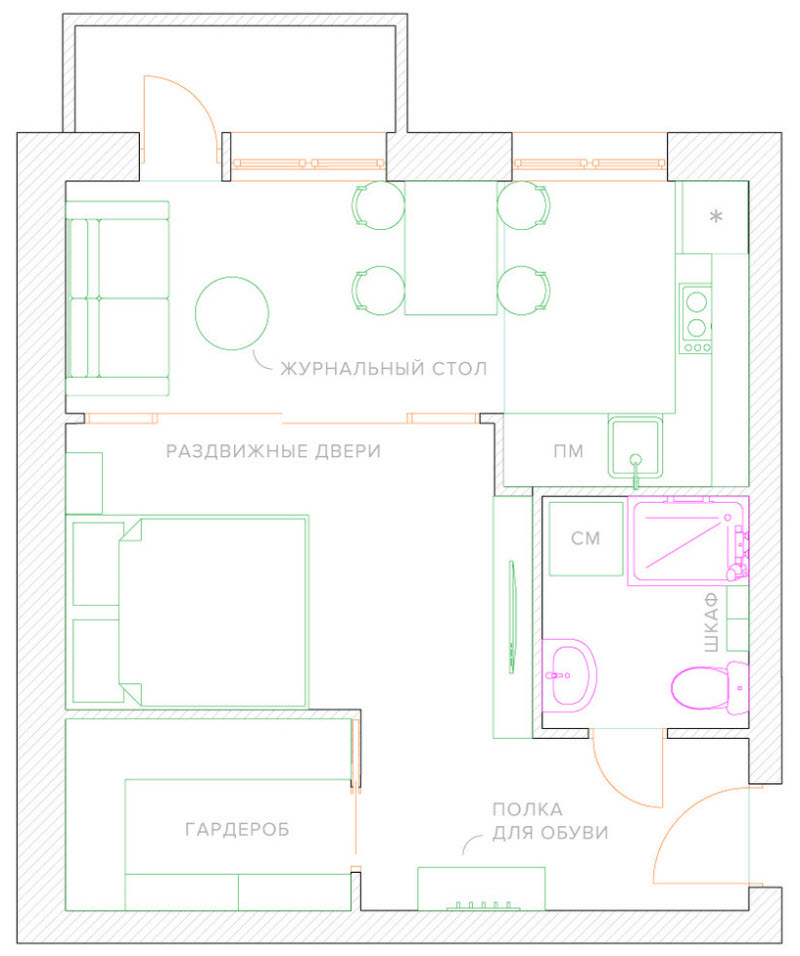 ΠΠ΅ΡΠ΅ΠΏΠ»Π°Π½ΠΈΡΠΎΠ²ΠΊΠ° ΠΎΠ΄Π½ΠΎΠΊΠΎΠΌΠ½Π°ΡΠ½ΠΎΠΉ ΠΊΠ²Π°ΡΡΠΈΡΡ ΡΠ°ΡΡΠΎ ΠΏΡΠ΅ΡΠ»Π΅Π΄ΡΠ΅Ρ ΡΠ΅Π»Ρ Π²ΠΈΠ·ΡΠ°Π»ΡΠ½ΠΎ ΡΠ²Π΅Π»ΠΈΡΠΈΡΡ ΠΏΠ»ΠΎΡΠ°Π΄Ρ ΠΈ ΠΎΡΠ³Π°Π½ΠΈΠ·ΠΎΠ²Π°ΡΡ ΡΠ°Π·Π»ΠΈΡΠ½ΡΠ΅ Π·ΠΎΠ½Ρ β ΠΎΠ±ΡΠ΅ΡΡΠ²Π΅Π½Π½ΡΡ, ΡΠ°Π±ΠΎΡΡΡ, ΠΎΡΠ΄ΡΡ