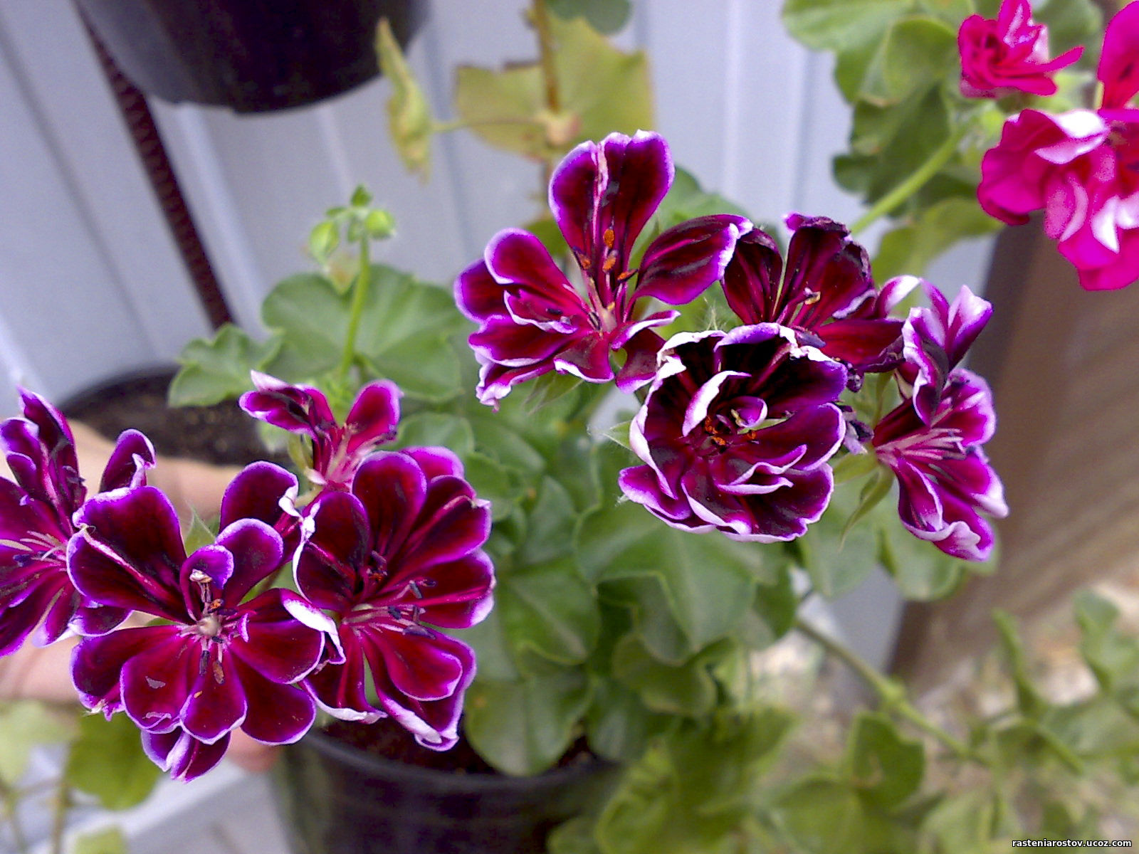 Пеларгонии плющелистные – ампельные растения со свисающими или стелющимися побегами длиной 25-100 см. Очень популярны при декорировании балконов и лоджий, хотя могут использоваться и в открытом грунте в качестве почвопокровников. Цветки ампельной пеларгонии могут быть любыми по форме: немахровыми, махровыми, розебудными. Расцветка их достаточно обширна: от белоснежной до винно-бордовой, почти черной. Листья ампельной герани гладкие, похожи на листья плюща (отсюда пошло и название группы). У большинства сортов листья достаточно жесткие, плотные. Герань ампельная в культуре выращивается с начала 18 века, но широкое признание она получила только в середине 19 века. С этого момента селекционеры начали активно интересоваться этим растением и в 1877 г выпустили в свет первую махровую ампельную пеларгонию сорта Konig Albert.