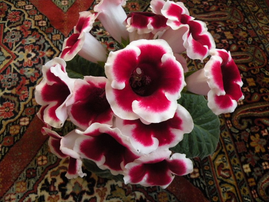 Ниже приведена фотография глоксинии двойной парчи, сделанная в моем классе в 1996 году. Думаю, картинка легко отвечает на возможный вопрос выше.