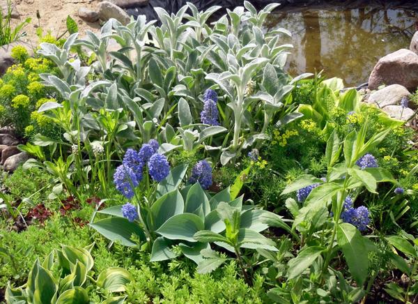 Последние 2 культуры будут здорово смотреться с высокорослыми сортами хост, а вот низкорослые разновидности лучше сочетать с незабудками, медуницей либо манжеткой.