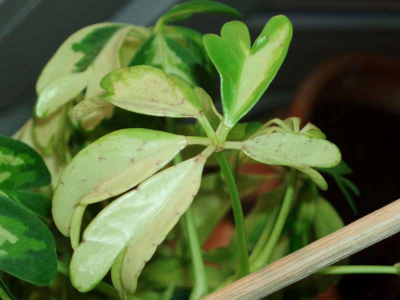 При неправильном уходе, шефлера очень часто поражается вредоносными насекомыми. Особенно она подвержена тли, щитовке и паутинному клещу.