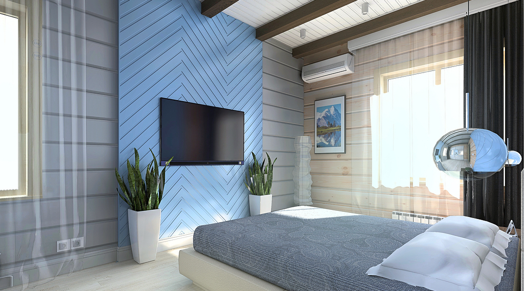 - Средиземноморский. Покраска вагонки в голубой и использование ее в белой комнате напоминает итальянскую архитектуру и наполняет теплом.
