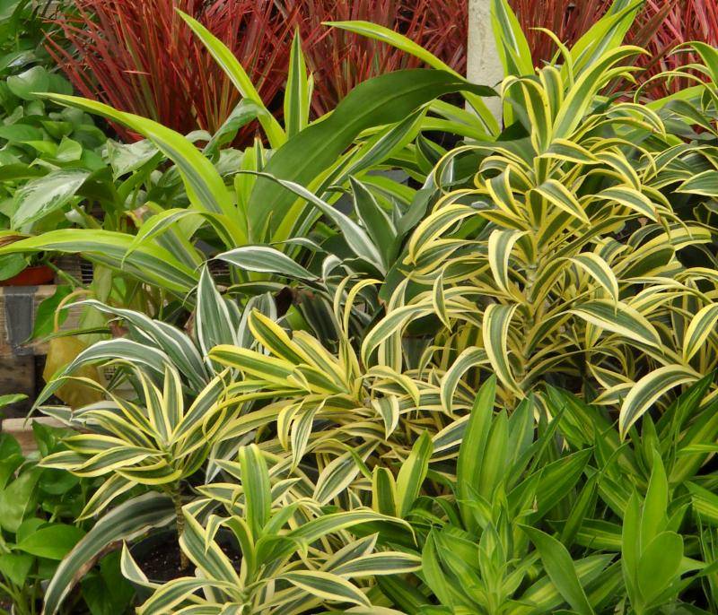 Известными подвидами являются «Варнески», «Джанет». «Джанет Крейг» – пальмовидное дерево, одно из самых высоких (до 3 метров), с тонким стволом. На нем располагается ряд пышных пучков из широких темных или окантованных желтоватым тоном листьев длиной до одного метра.