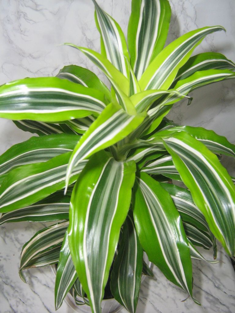 Обычно называется Pleomele, он обычно имеет плотные темно-зеленые розетки листьев, вихревых вокруг концов стеблей, которые можно использовать как столовые растения, кусты или деревья. У Song of India желтый край, подчеркивающий короткие, похожие на меч листья, а у Song of Jamaica белые продольные полосы.