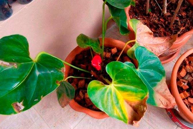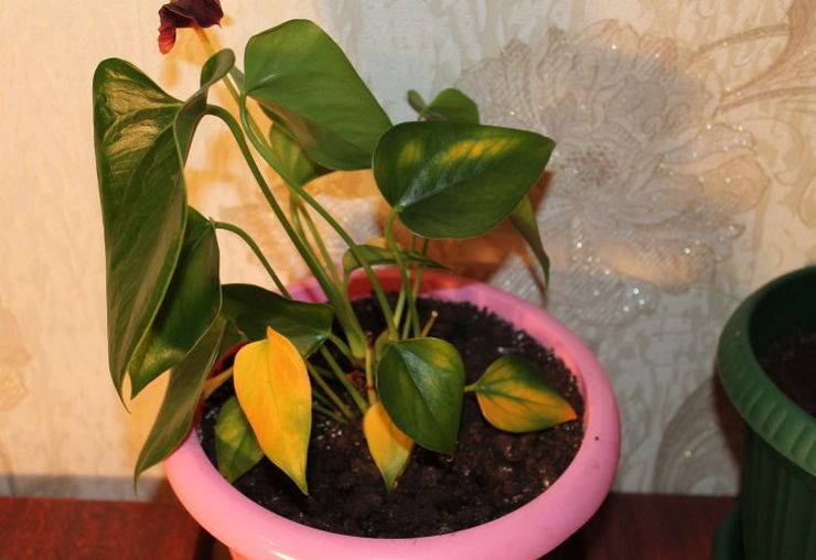 Почему желтеют и сохнут листья у антуриума, причины, фото