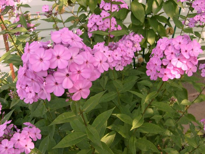 В группу кустовых флоксов, цветущих летом, входят флокс метельчатый (Phlox paniculata), флокс пятнистый (Phlox maculata), флокс широколистный (Phlox amplifolia).