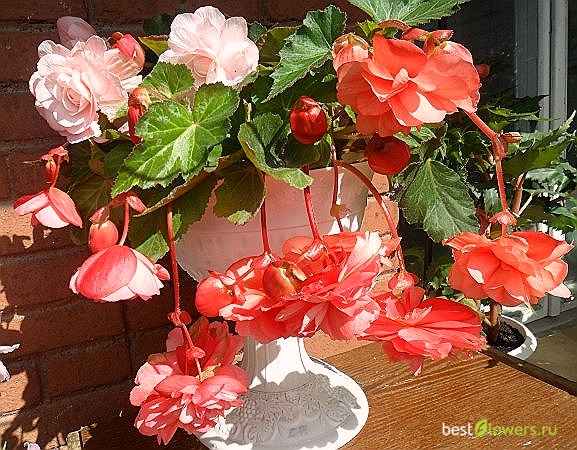 Клубневые бегонии (справа) популярны среди садоводов на открытом воздухе из-за прекрасных цветочных экспозиций, которые они устраивают летом, и длится месяцами.По той же причине их выращивают в помещении как комнатные растения.