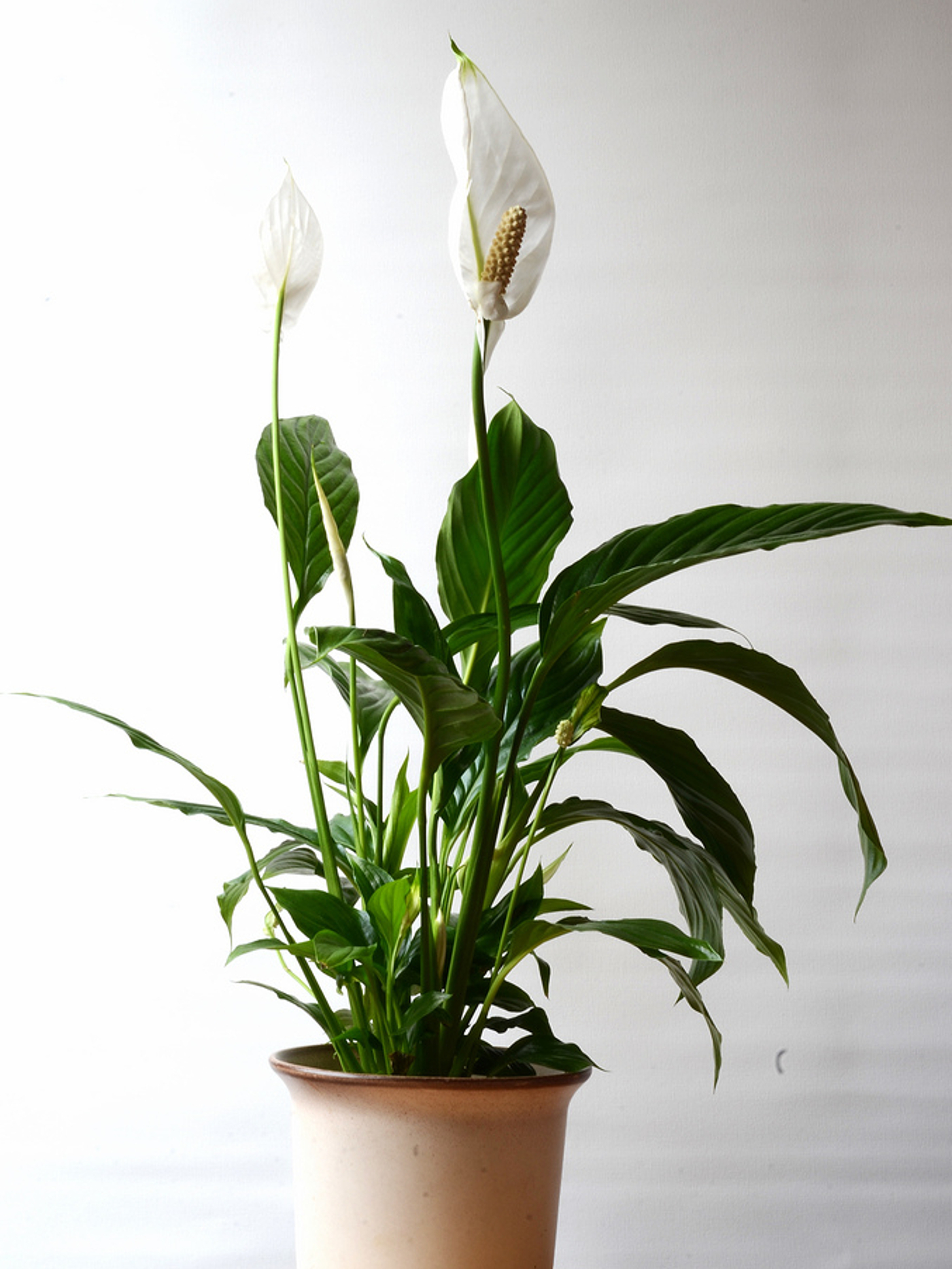 Спатифиллумы — это жаждущие растения, а быстро сообщают вам, когда они хотят выпить, по заметно опущенной листве.