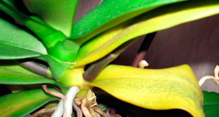Так же жёлтые листья и процесс гниения корней, которые стали чёрными говорят о лишней влаге. Застоявшаяся вода в горшке провоцирует процесс гниения корневой системы и приводит у гибели орхидеи.